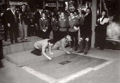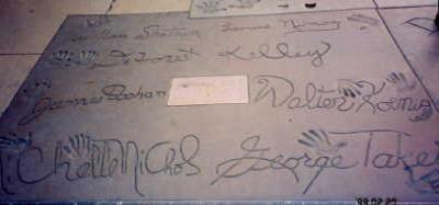 〔写真右〕TOSメンバーの手型&サイン。真ん中の小さなプレートにはエンタープライズ号が彫られているのだけど・・・うっ、見えない。