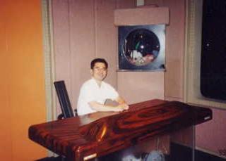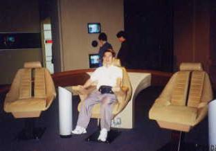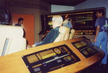 〔写真2段目〕左から、ブリッジの椅子、D型艦の断面図のパネル、艦長作戦室。