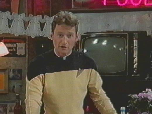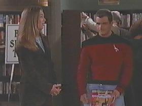 ハロー!スーザン 第4話「イライラ、スーザン」(ブルック・シールズ)〜スーザンの同僚のトッドが耳をとがらせTNGタイプ(赤)の制服を着て現れる。(下中の画像)