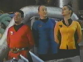 宇宙船レッド・ドワーフ号〜しばしばSTのパロディのシーンがありました。制服(下中の画像)とか転送とかボーグ(下右の画像)とか・・・