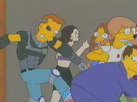 ザ・シンプソンズ「夢のお下劣ユートピア!?」〜TNGの制服を着た太った男が登場。(下右の画像)