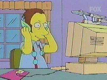 ザ・シンプソンズ第121話(第6シーズン)「ミルハウス 映画に出演!」〜コミックショップのオーナーのインターネット仲間の一人は、パソコンの上にエンタープライズ号の模型を置き、とんがり耳を着けています。(下中の画像)