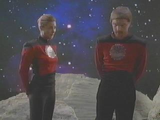 タブー(98)〜SF映画の撮影シーンで、TNG赤の制服を着ていました。(胸に何か付いていますが。)(下左の画像)