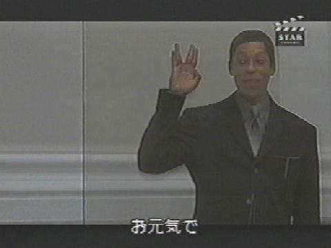 タイムマシン(2002)〜未来の図書館の案内人が主人公と別れる際、ヴァルカンサインをして、Live long & prosper!と言っています。(下中の画像)
