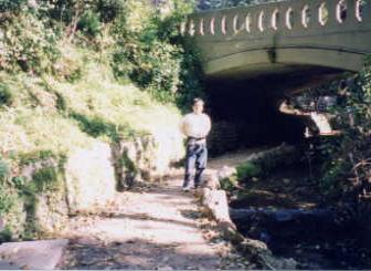 前回書いたとおりカイ・ウィンが立っている橋は遊歩道と平行に走っている自動車道ですが、それを撮ったのが下左の写真です。で、カイ・ウィンの位置からキラとバライルの方を見下ろしたのが、下右の写真です。