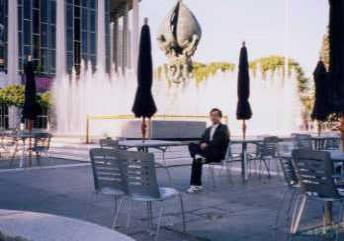 VOY第51話「29世紀からの警告(後編)」で、ロビンソンらがスターリングを呼び出すシーンが撮影された ミュージックセンターの広場ヘ(ロケ地巡り及び前回の旅第1日参照)。前回の旅の時と同じく、巨大なクリスマス・ツリーが設置され、休憩用のイスとパラソルが噴水を取り囲んでいました。今回はパラソルが閉じられており、前回よりは見通しがよかったです。