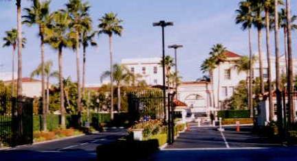 下の上の2枚の写真は、左が正門。右がメルローズ門です。メルローズ門の左奥に給水塔が見えます。門の奥には、映画「スター・トレックIV 故郷への長い道」のバード・オブ・プレイがサンフランシスコ湾に着水したシーンを撮影したプールのスクリーンが白く見えます。(プールは普段駐車場として使用)