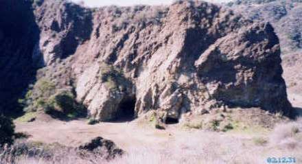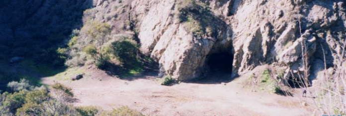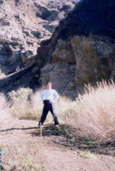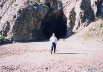 下左と下中の画像は、DS9第70話「シャカールの乱」のものです。通常このような洞窟内のシーンはパラマウントスタジオにある通称「プラネット・ヘル(地獄の惑星)」と呼ばれるセットで撮影されますが、この画像のシーンはここブロンソン峡谷の洞窟内で撮影されていますね。その証拠に向こうに洞窟の出入り口がちらっと映っています。上の写真とは反対方向から(つまり、奥から手前に向かって)撮影されています。ここで記念撮影したのが、下右の写真です。(^^)