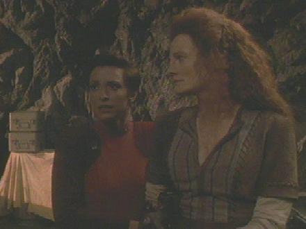 下左の画像もDS9第70話「シャカールの乱」のものですが、やっぱりここでも記念撮影しました(下右の写真)。もううれしくて、うれしくて・・・。 (^^)