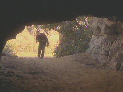 この穴の奥を撮ったのが下の写真です。前回の旅の報告でも書きましたように、この穴はトンネル状になっており、向こうに抜けられるようになっています。