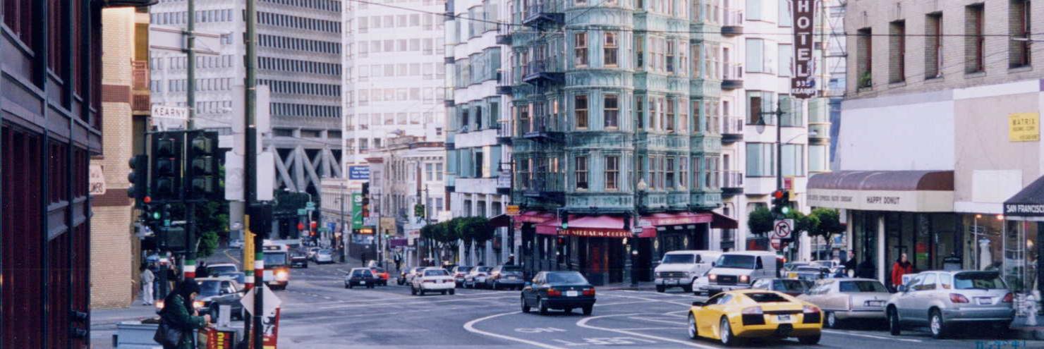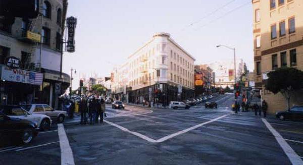 場所は、カーニー通り(ストリート)とコロンバス通り(アベニュー)とパシフィック通り(アベニュー)が交わる所です。