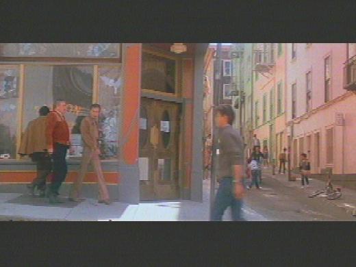 カークたちは道を渡りますが、カークがマッコイから贈られたメガネを骨董屋でお金に替えると、再び道を横断して元いた南西側の角に戻り、そこでお金を分配しています。