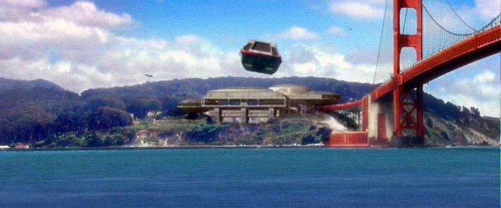 ちなみに、このフォートポイントにも将来艦隊の建物が建つようで、それが右の画像(TMP(映画1作目)から)です。カークが乗ったシャトルが到着した建物です。私が記念撮影したのは、ちょうど建物の下辺りです。