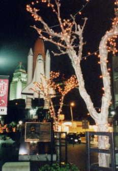 木々に張り巡らされた電飾とライトアップした市庁舎(左後方)がきれいだ。